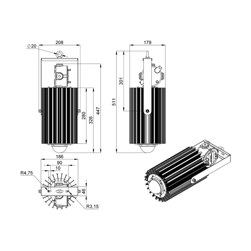 Светильники можно монтировать на рым-болт (базовая комплектация) или кронштейн (опционально).