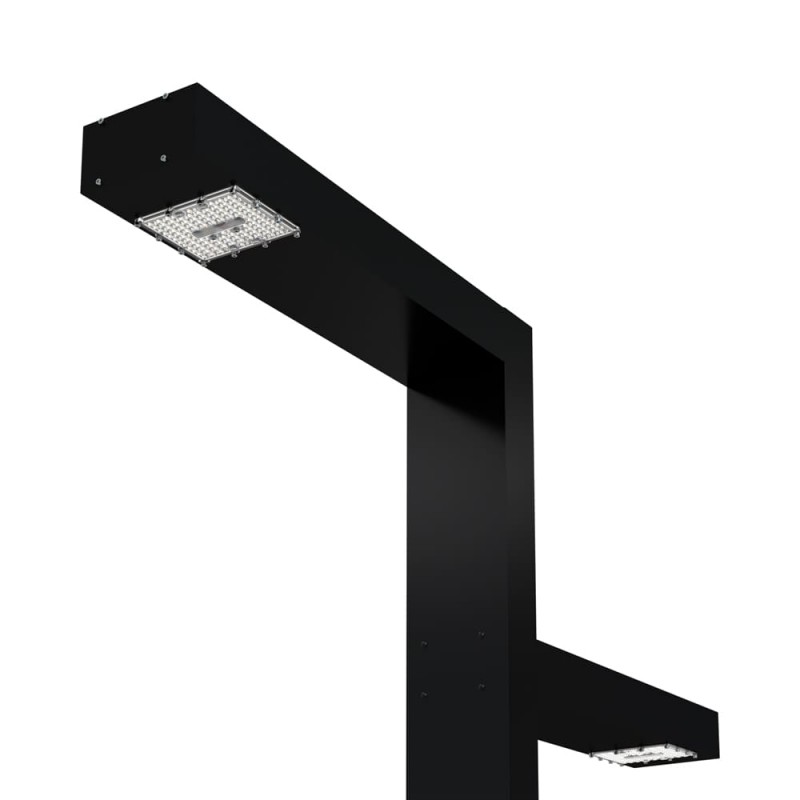 Светильники изготавливаются в едином с опорой корпусе из анодированного алюминиевого профиля, покрытого порошковой краской. Высота светильника от 3 до 5 метров.