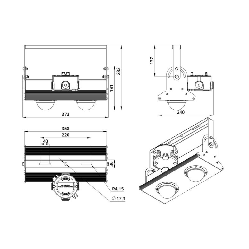 для светильников 90-100 Вт и 180-200 Вт при температуре от -60°C до +50°C – 1Ex db mb IIC T5 Gb X /Ex tb IIIC T100 °C Db X.