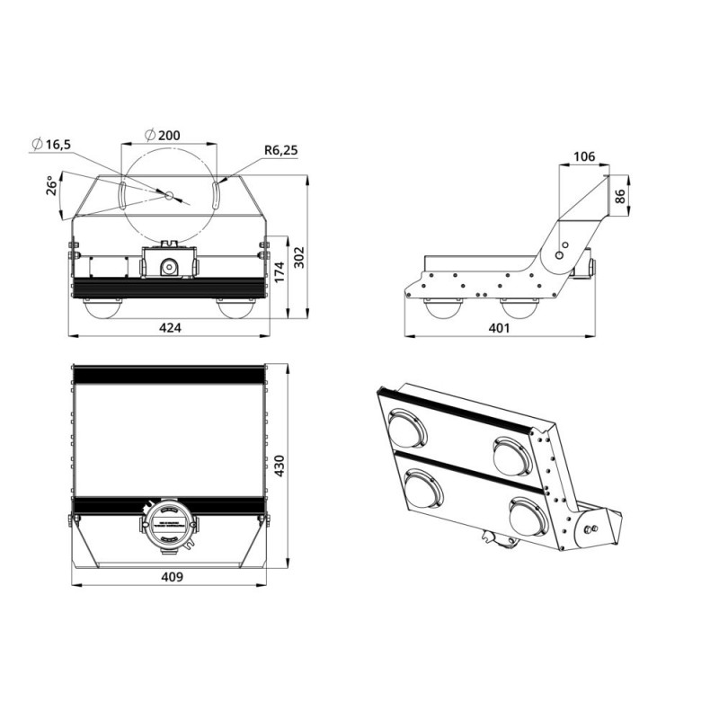 Герметичный экструдированный корпус изготовлен из анодированного алюминия с большой площадью поверхности (за счёт рёбер и волнообразных изгибов), что способствует эффективному теплоотведению от светодиодов.