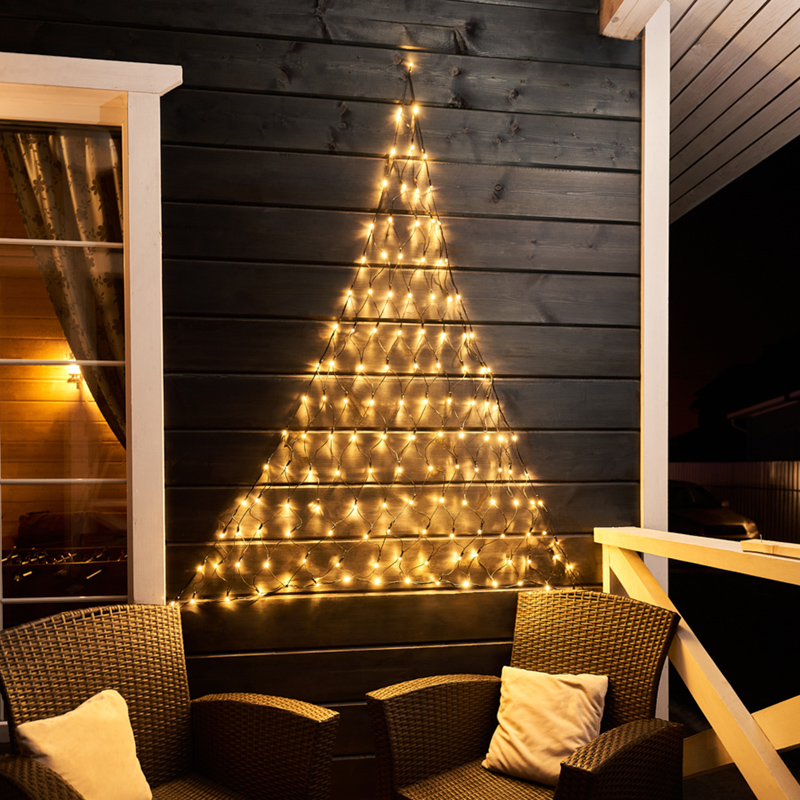 Благодаря нестандартной треугольной форме и наличию коннекторов с разных сторон вы с легкостью можете создать необычные световые фигуры. Также треугольная гирлянда может послужить оригинальной альтернативой новогодней елке.