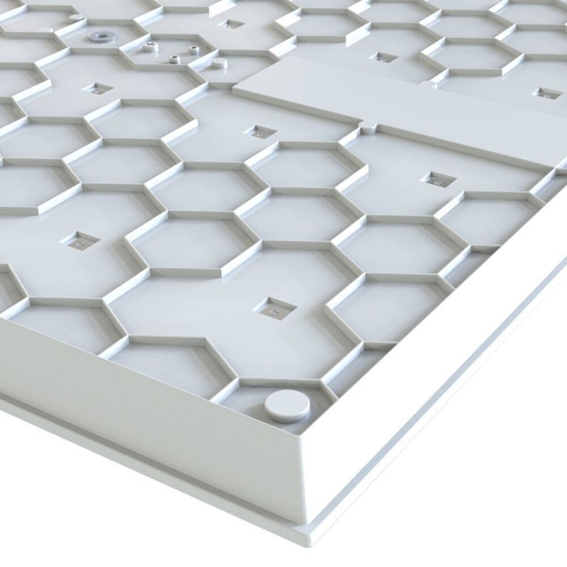 Специальные рёбра жёсткости в виде шестигранников делают корпус прочным.