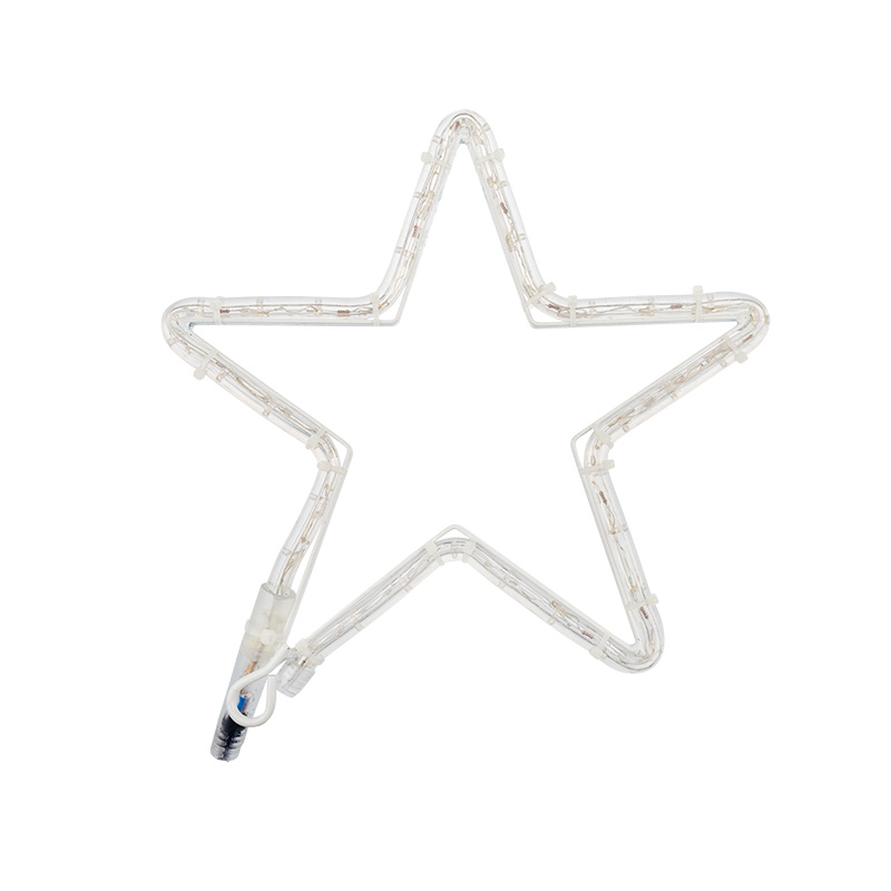 Звезда имеет классическую форму, размер 30*28 см и нейтральное белое свечение 36 светодиодов.