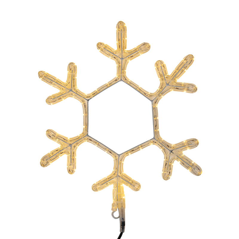 Снежинка имеет размер 45*38 см и Теплое белое свечение светодиодов.