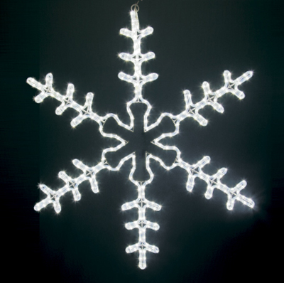 Снежинка имеет размер 95*95 см и Белое свечение светодиодов.