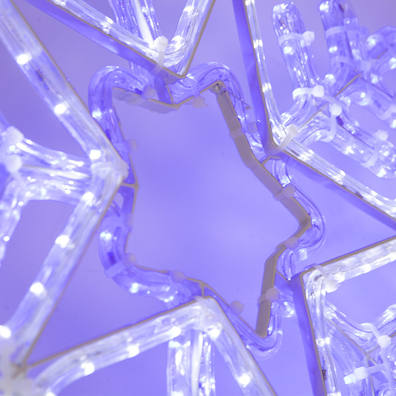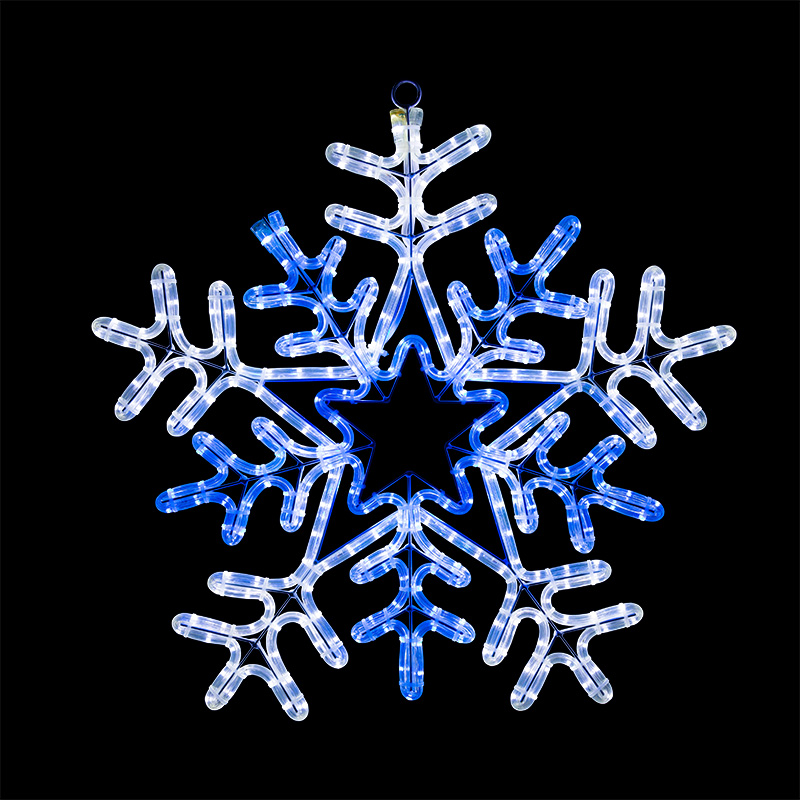Снежинка имеет размер 60*60 см и Белое с Синим свечение светодиодов.