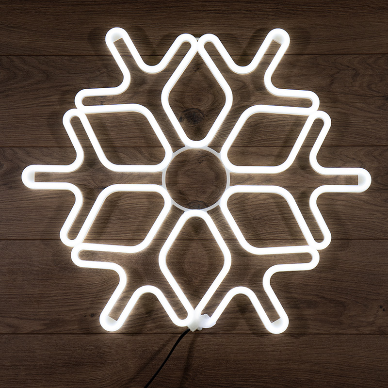 Фигура «Снежинка» изготовлена из гибкого неона, который закреплен на пластиковом каркасе.