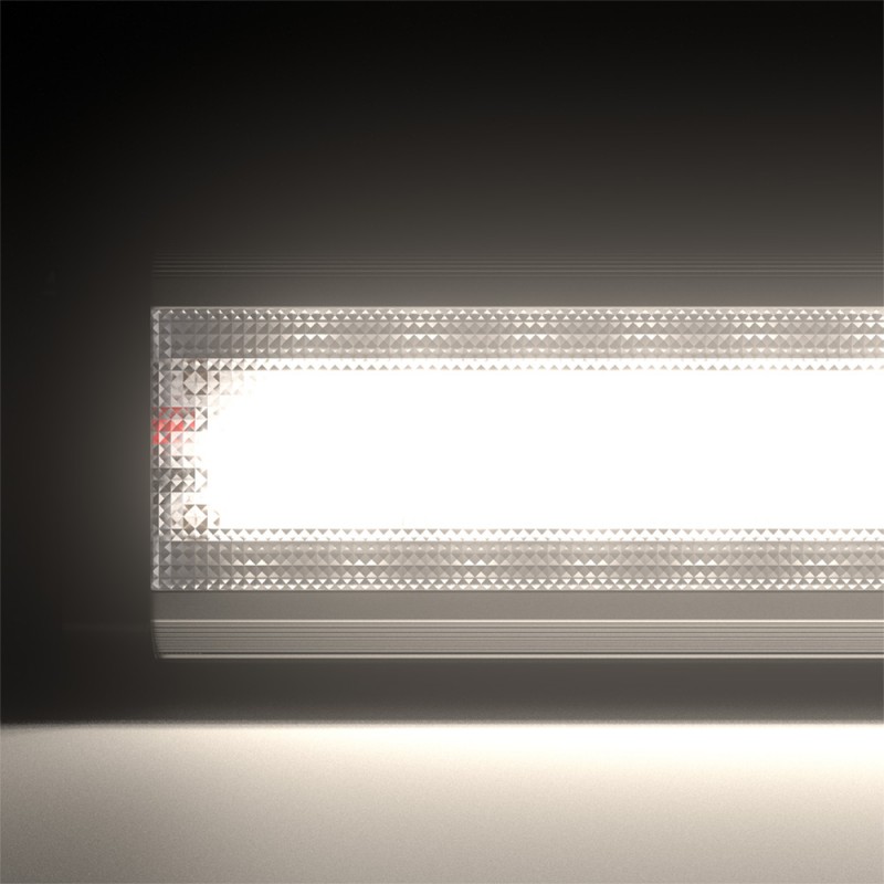 В светильниках «Т-Линия Компакт Низковольтный» используются светодиодные планки на специальной алюминиевой подложке, изготовленные по технологии SMT. Светодиодная планка максимально приближена к рассеивателю, чтобы сократить потери светового потока.
