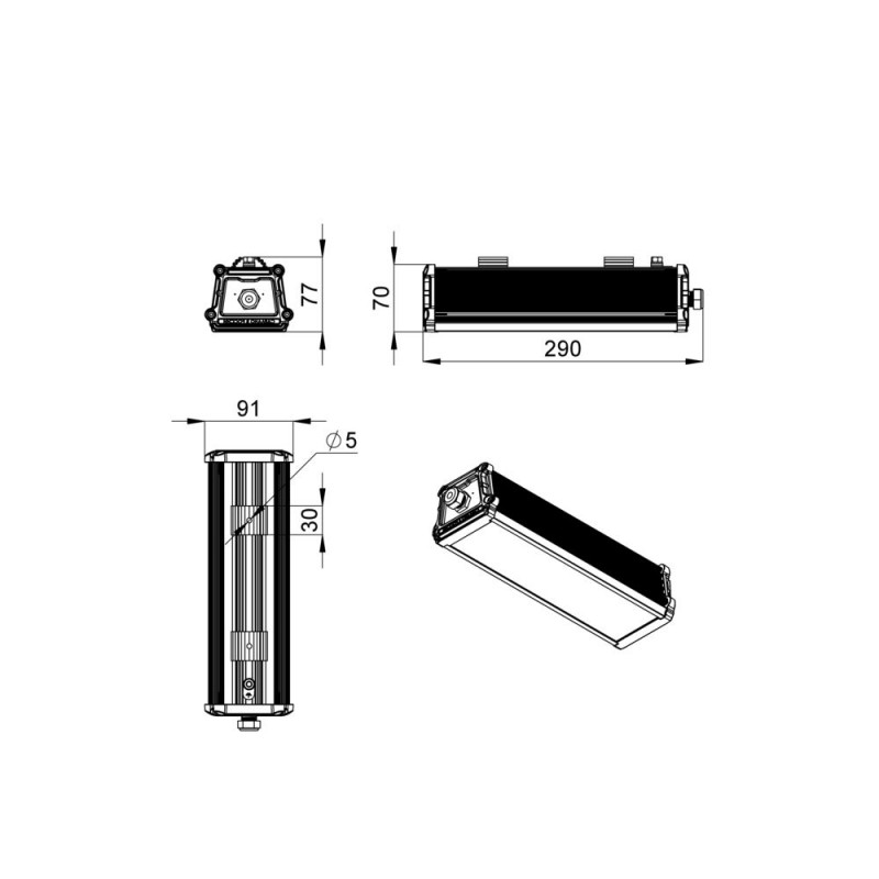 Экструдированный корпус изготовлен из анодированного алюминия, устойчивого к коррозии, имеет торцевые металлические крышки с силиконовым уплотнителем. Большое количество ребер обеспечивает эффективный теплоотвод. Светильник надежно защищён от влаги и пыли (IP66), имеет широкий диапазон температуры эксплуатации от 40 °С до +50 °С.