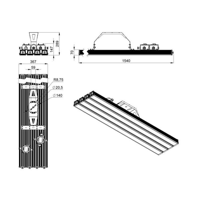 Экструдированный корпус изготовлен из анодированного алюминия, устойчивого к коррозии, имеет торцевые металлические крышки с силиконовым уплотнителем. Большое количество ребер обеспечивает эффективный теплоотвод. Светильник надежно защищён от влаги и пыли (IP66), имеет широкий диапазон температуры эксплуатации от -40 °С до +50 °С.