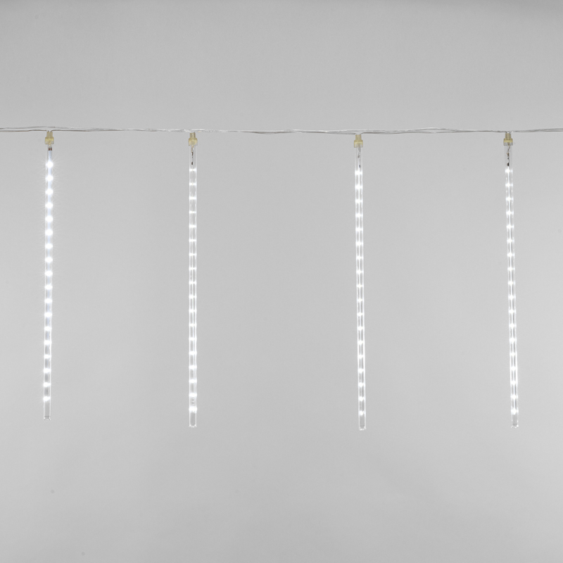 Гирлянда «Тающие сосульки» — это оригинальное светодиодное украшение для дома. В комплекте 8 прозрачных трубок из ПВХ длиной 50 см. Внутри каждого элемента находится двухсторонняя плата с диодами белого свечения. За светодинамику, которая создает эффект стекающей капли, отвечает встроенный микрочип. Рабочее напряжение — 24 В, трансформатор идет в комплекте. Длина питающего шнура — 1.5 метра.