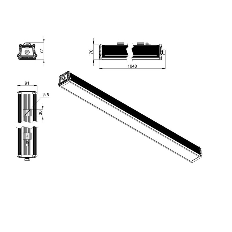 Экструдированный корпус изготовлен из анодированного алюминия, устойчивого к коррозии, имеет торцевые металлические крышки с силиконовым уплотнителем. Большое количество ребер обеспечивает эффективный теплоотвод. Светильник надежно защищён от влаги и пыли (IP66), имеет широкий диапазон температуры эксплуатации от 40 °С до +50 °С.