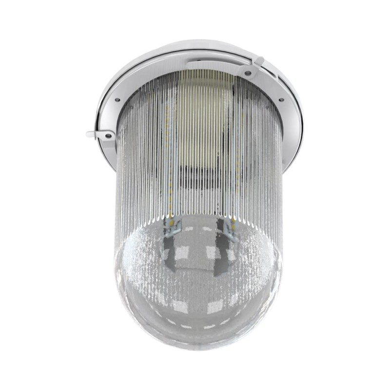 Рассеиватель изготовлен из стекла. Для его дополнительной защиты от механических повреждений, на светильник можно установить специальную металлическую решётку.