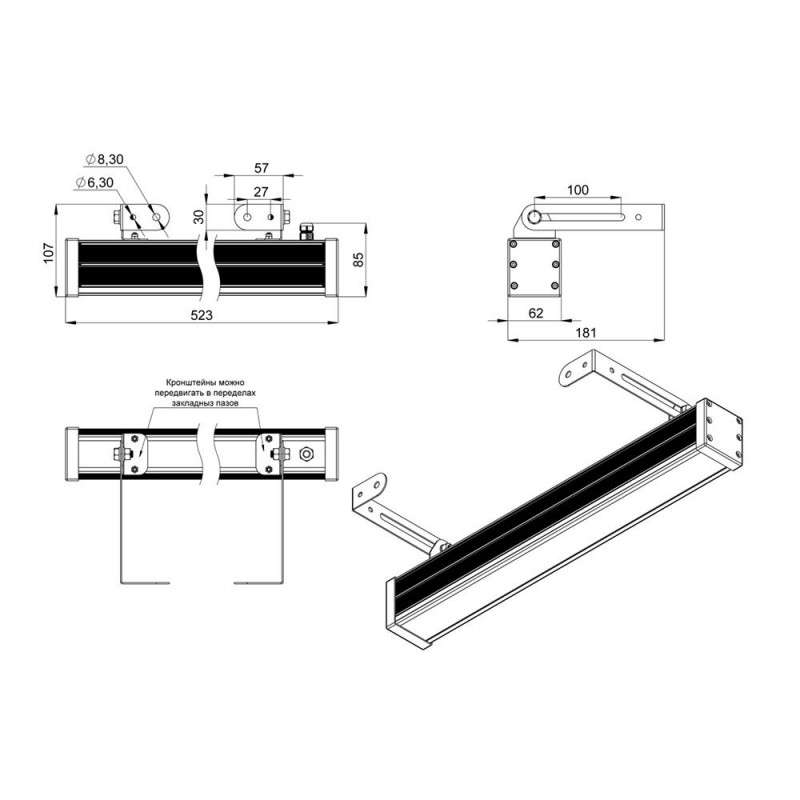 Светильники «Барокко Монохром» устанавливаются на кронштейн с возможностью регулировки угла наклона и удобной системой фиксации угла поворота светильника.