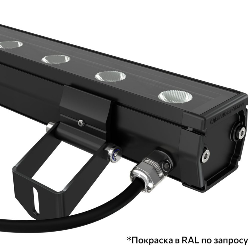 Возможно монохромное исполнение светильника со светодиодами одного из цветов на выбор — красного, синего, зеленого или янтарного, а также полноцветные варианты (RGB, RGBW с управлением по DMX).