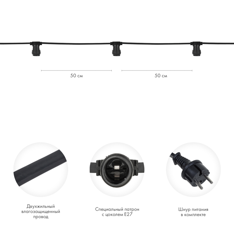 Данная гирлянда имеет 2 жилы. Расстояние между патронами 50 см.