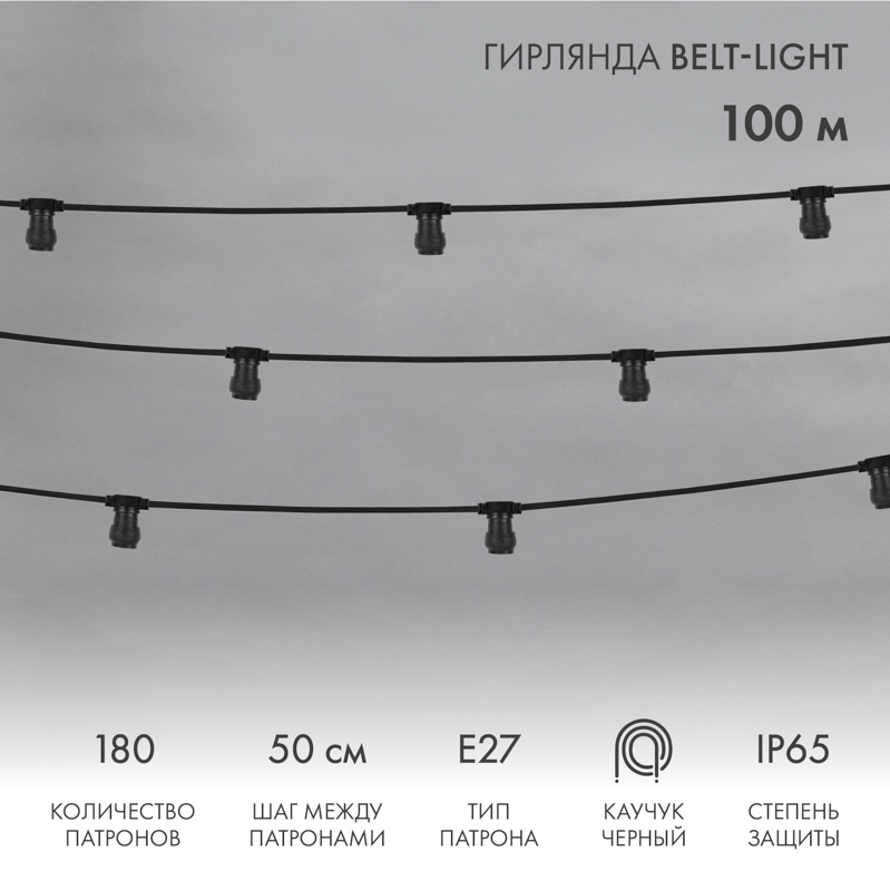 «Белт Лайт» представляет собой токопроводящую многожильную шину в виде ленты. Через определённый интервал на ней последовательно закреплены патроны Е27. Расстояние между патронами фиксировано, и в зависимости от модификации устройства может составлять 10, 15, 20 или 40 сантиметров.