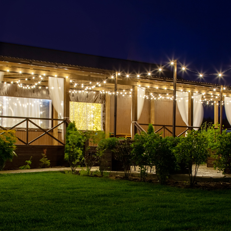 Гирлянда «Белт Лайт» прекрасно подходит для декорирования любых архитектурных сооружений или для создания «перетяжек» между опорами освещения или деревьями.