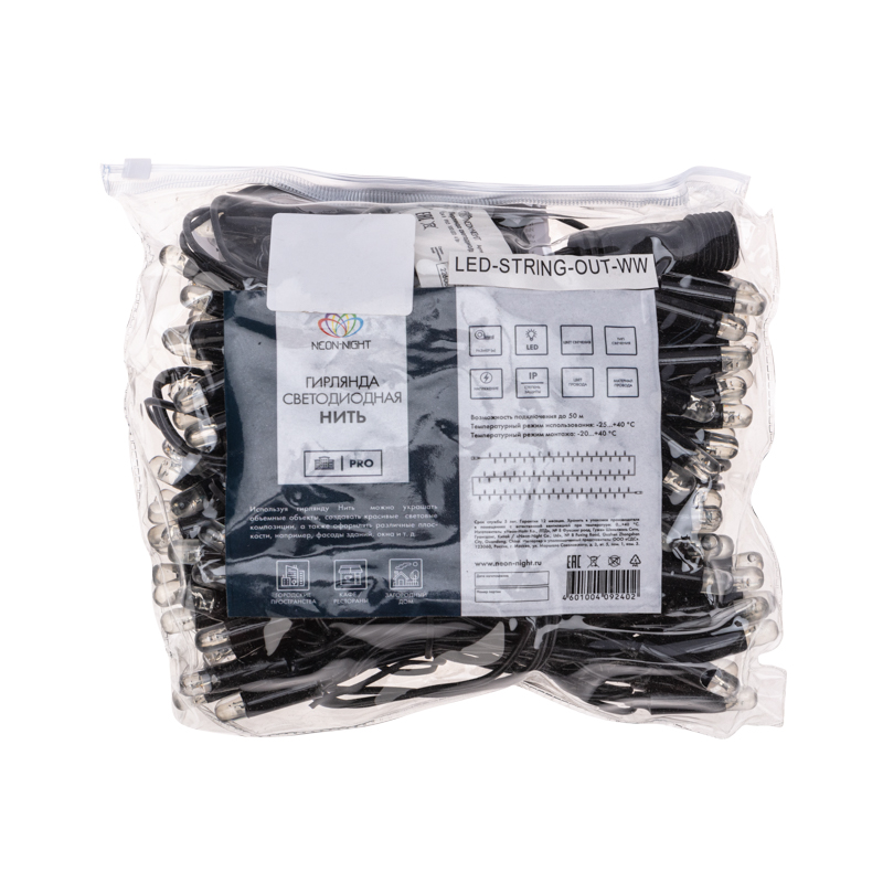 Также гирлянда Нить часто используется для проектов по украшению объектов разной значимости, так как ее можно соединить до 200 метров, подключив на шнур питания 303-500/303-500-1 (в комплект не входит).