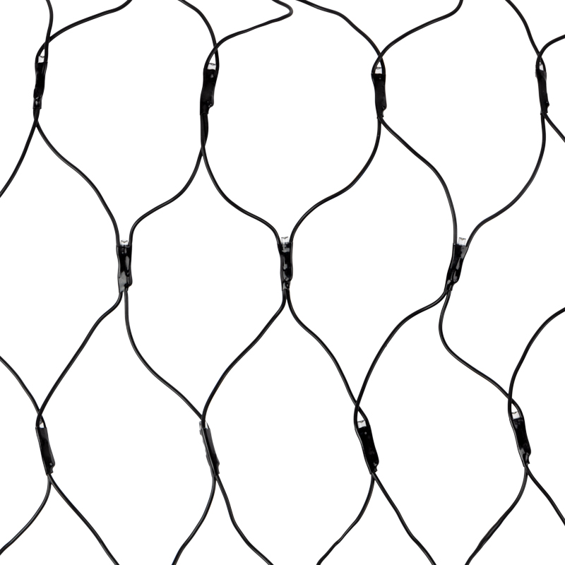 Светодиодная гирлянда Сеть выполнена в форме прямоугольника, разделенного на равные ромбы. В углах этих ромбов располагаются светодиоды белого цвета.