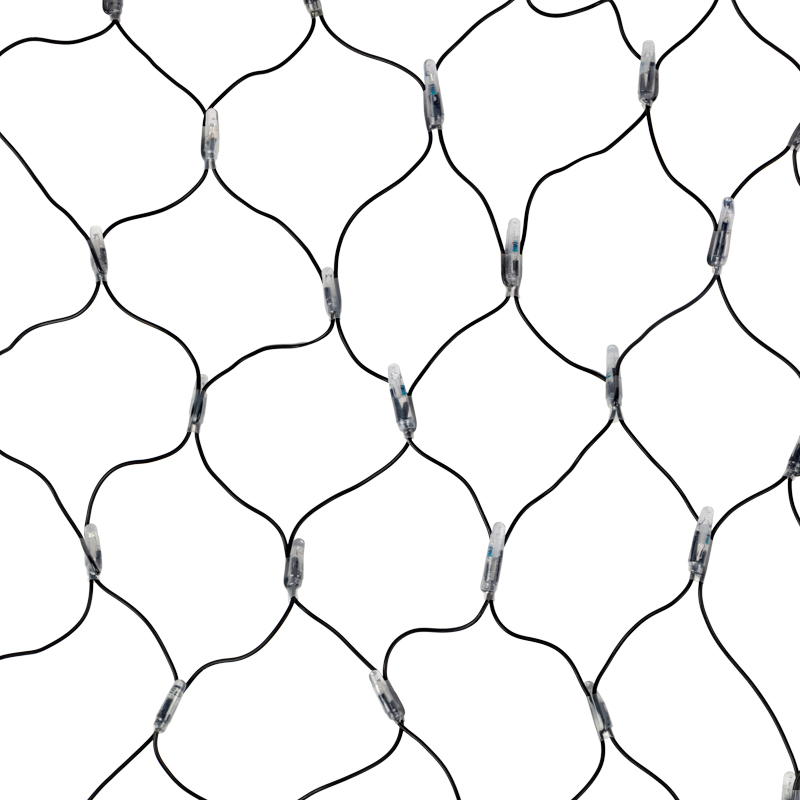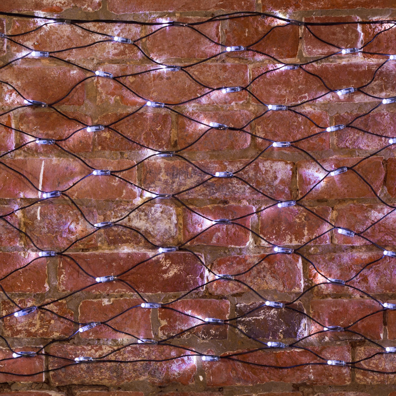 Светодиодная гирлянда Сеть выполнена в форме прямоугольника, разделенного на равные ромбы. В углах этих ромбов располагаются светодиоды белого цвета.