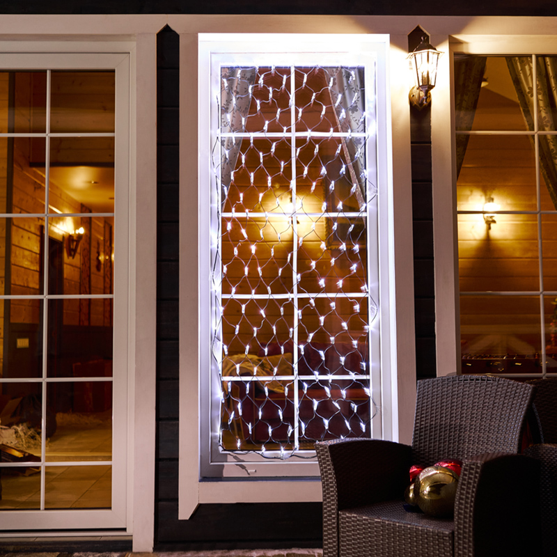 Благодаря такой уникальной форме гирлянда идеально подходит для декорирования кустов, обмотки колонн или столбов, а также для создания растяжек между направляющими в беседках или на верандах. Сеть часто используют для украшения окон или потолков.