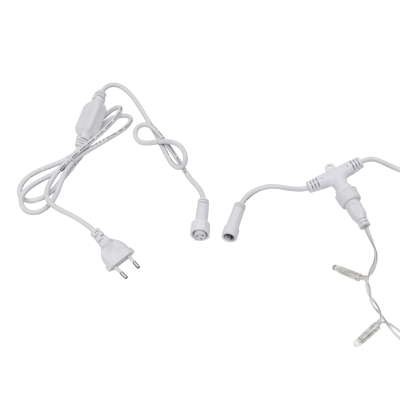 На концах шины располагаются коннекторы, которые предназначены для последовательного соединения нескольких гирлянд в большой занавес для украшения больших площадей или объемных объектов.