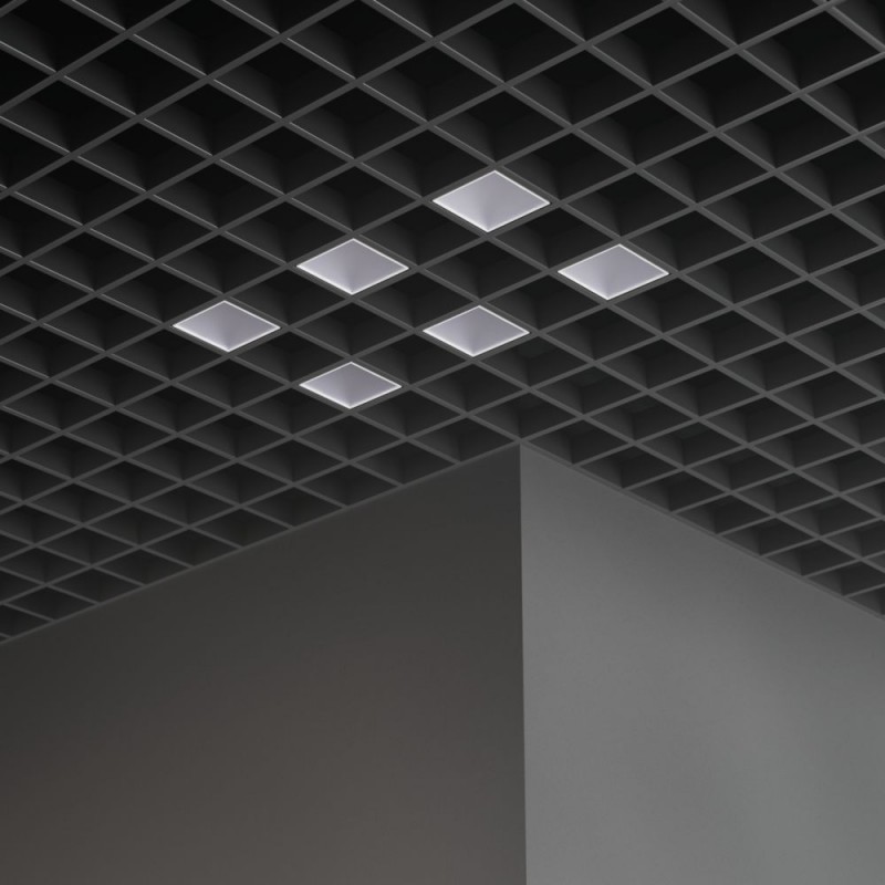 Светильники предназначены для встраиваемого монтажа в потолок типа «Грильято» с ячейкой 100х100 мм.