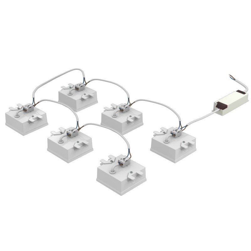 К одному драйверу подключаются несколько светильников в зависимости от комплектации, максимальное количество 6 штук.