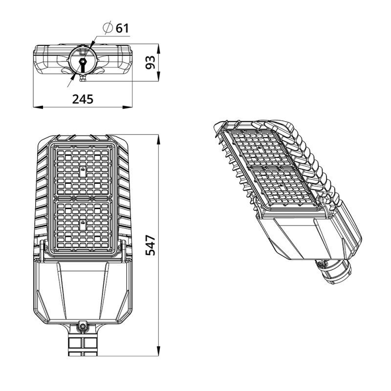 С помощью консольного крепления светильники устанавливаются на опору круглого сечения диаметром до 60 мм. Для возможности регулировки угла наклона светильники могут комплектоваться поворотным креплением.