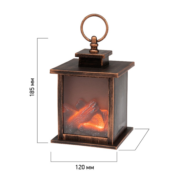 Светодиодный камин «Кантри» с эффектом живого пламени поможет создать неповторимую атмосферу домашнего уюта и тепла. Главное преимущество декора – безопасность использования: изделие не выделяет дым, копоть, не нагревается и не может повредить окружающие предметы. Камин выполнен в виде бронзового фонаря с удобным кольцом, которое позволит подвесить фонарь на крючок в удобном месте. 2 светодиода, управляемые микрочипом, имитируют плавно движущийся огонь и тление поленьев. Интерьерное украшение работает от 3 батареек типа АА, которые размещаются в специальном отсеке в нижней части корпуса.