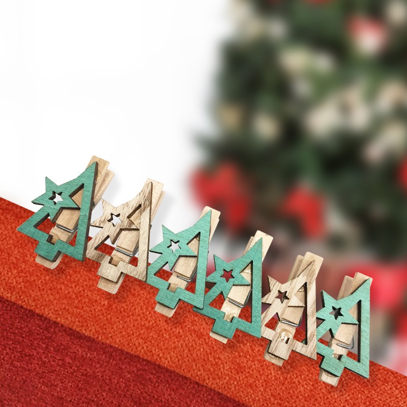 Деревянные прищепки «Новогодняя ель» (размеры каждой 4,4x2,6x1,4 cм) — интересное решение, которое не только станет оригинальным украшением интерьера, но и поможет воплотить самые смелые идеи в создании уникальных арт-объектов. Крепкие механизмы пригодятся при упаковке новогодних подарков, подойдут для фиксации светодиодных гирлянд на еловых ветках. 6 прищепок, входящих в набор, выполнены из натуральной древесины с характерной фактурой поверхности, покрытой безопасным нетоксичным составом.