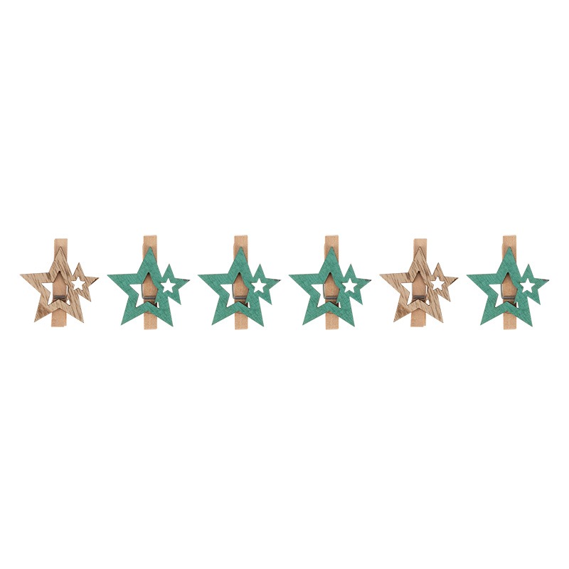 Деревянные прищепки «Звездочки», каждая из которых имеет размер 4,4x3,9x1,4 cм, выполнены в приятных бирюзовых тонах. В набор входят 6 изделий, произведенных из экологичного материала — природной древесины. Поверхность фигурок покрыта нетоксичным красителем, состав которого продлевает срок службы декора. Прищепки станут милым интерьерным украшением, помогут упаковать рождественские подарки родным и близким, надежно закрепят светодиодную гирлянду на пушистых еловых ветках. Набор станет приятным сюрпризом к празднику для детей и взрослых.