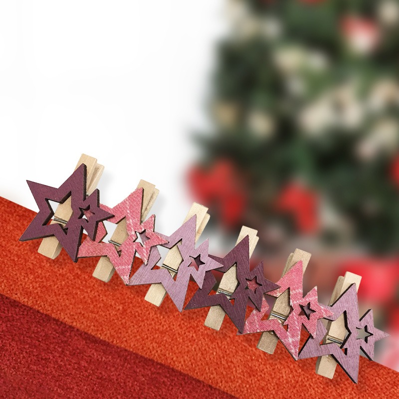 Деревянные прищепки «Звездочки» — это набор из 6 декоративных предметов (размер каждого 4,4x3,9x1,4 cм), выполненных в приятных оттенках розового. Прищепки станут не только интересным украшением интерьера, но и помогут в хозяйстве благодаря своей функциональности. При помощи изделий можно закрепить оконный текстиль в нужном положении, зафиксировать елочную гирлянду, оригинально упаковать подарки, оформить праздничные открытки и многое другое. Прищепки «Звездочки» предоставляют широкий простор для фантазии в области создания уникальных арт-объектов.