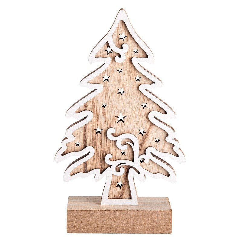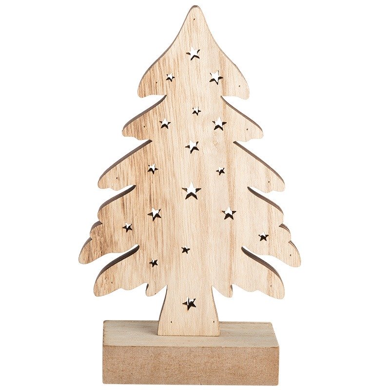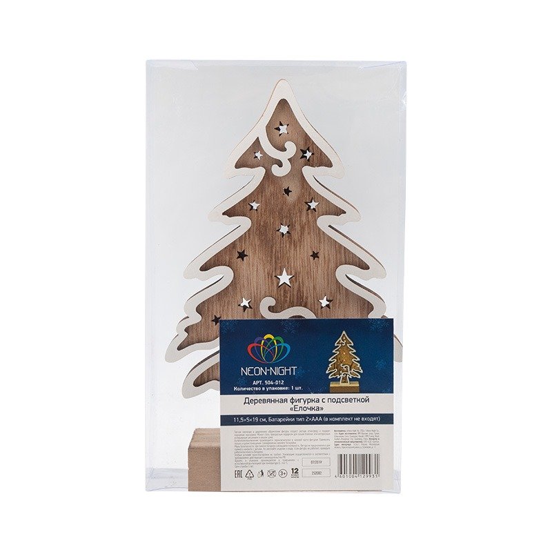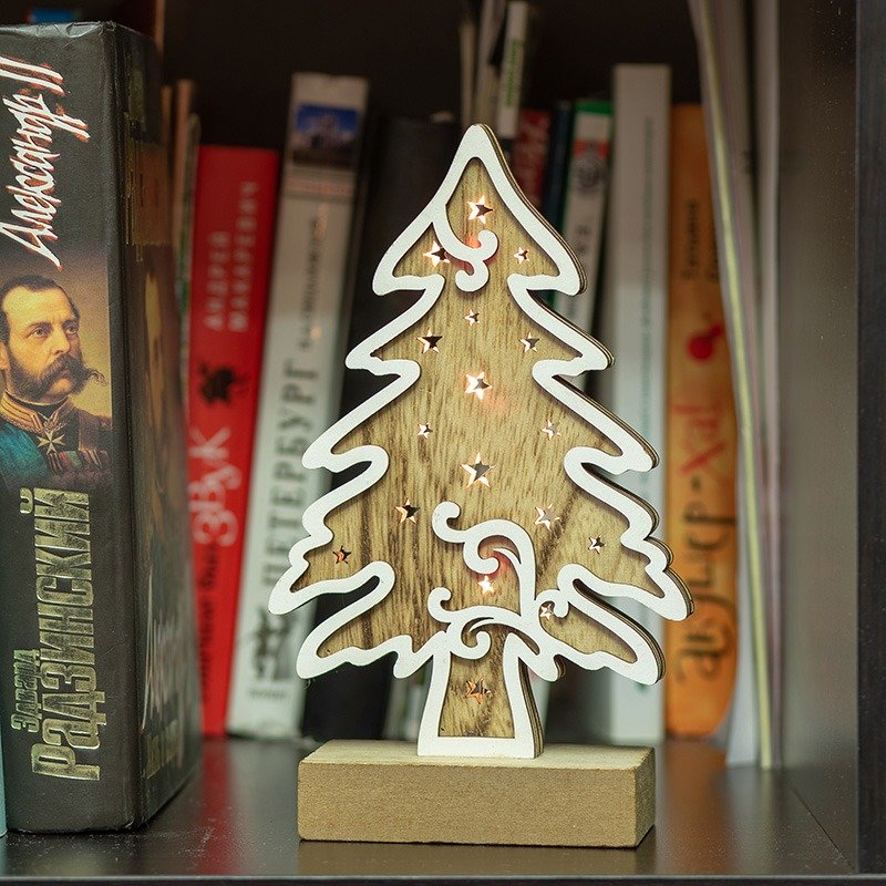 Деревянная фигурка с подсветкой «Елочка» 11,5×5×19 см — оригинальное интерьерное украшение, которое подарит ощущение уюта и тепла, создаваемое аутентичной фактурой дерева и мягким свечением трех диодов. Декоративное изделие работает от 2 батареек типа ААА. Светодиоды экономно расходуют заряд, превращая всю энергию в свет и не нагреваются. В нижней части корпуса предусмотрена клавиша включения и выключения. Деревянная фигурка с подсветкой станет прекрасным подарком к Новому году и Рождеству.