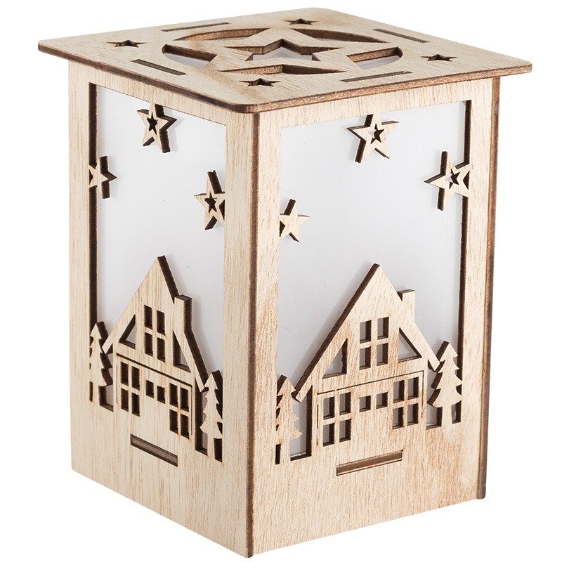 Деревянная фигурка с подсветкой «Волшебный фонарик» 13,8×11×11 см создана, чтобы гармонично украсить ваш интерьер, наполнить дом уютом, теплом и создать ощущение комфорта. Светодиодный декор выполнен в виде фонаря в прямоугольном корпусе из натуральной древесины. Экологичный материал не вызывает аллергии. 1 яркий диод мягко подсвечивает резные фигурки домиков. Изделие питается от 1 батарейки CR2032, которая входит в комплект. Деревянная фигурка с подсветкой — прекрасный подарок для родных и друзей.