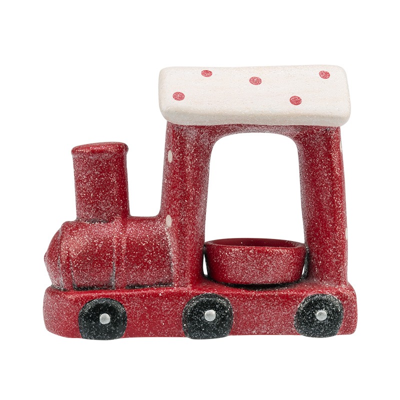 Керамический подсвечник «Паровоз» 17.1×7.1×14.7 см — это оригинальное интерьерное украшение, выполненное в виде красного паровозика, покрытого легким слоем искрящегося инея. В конструкции предусмотрена чаша, в которую устанавливается свеча. Керамика отличается низкой теплопроводностью и практически не нагревается от огня, поэтому использование подсвечника безопасно даже на деревянных поверхностях. Экологичные материалы не вызывают аллергии. Керамический подсвечник станет прекрасным подарком к любому празднику.