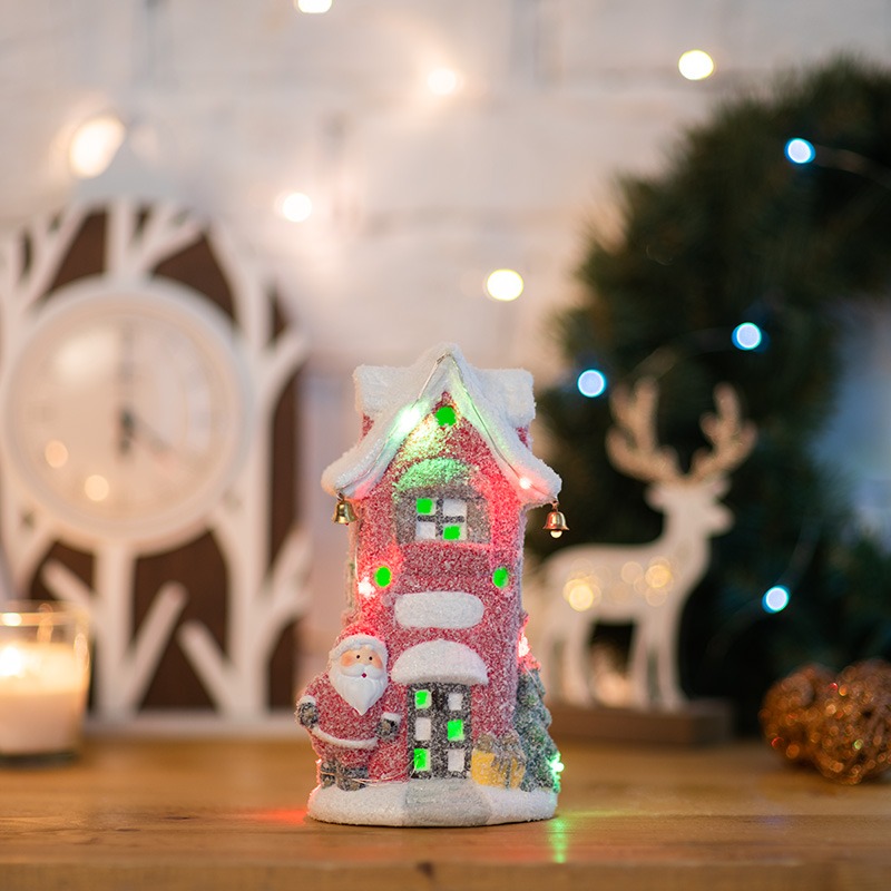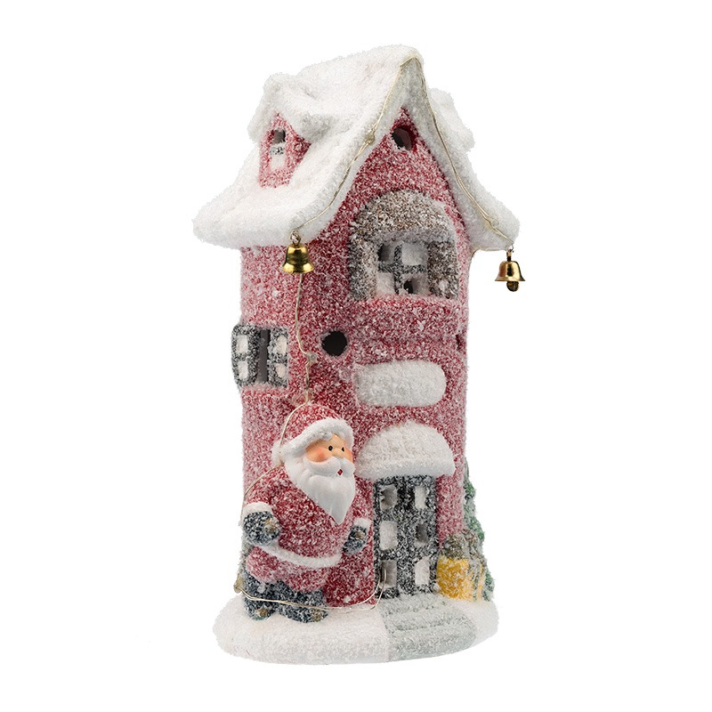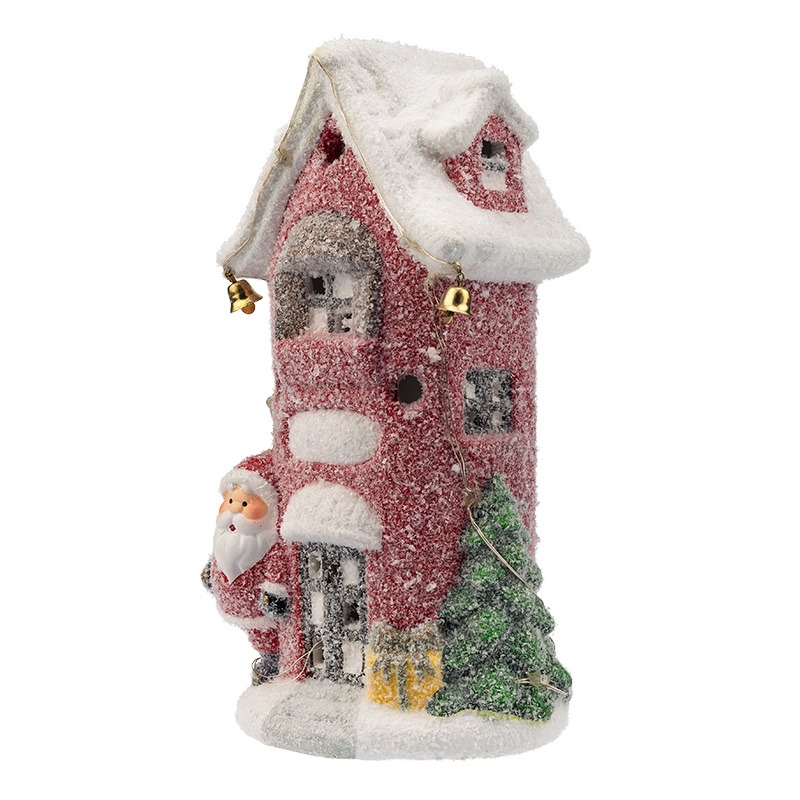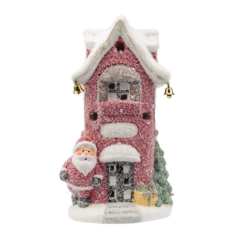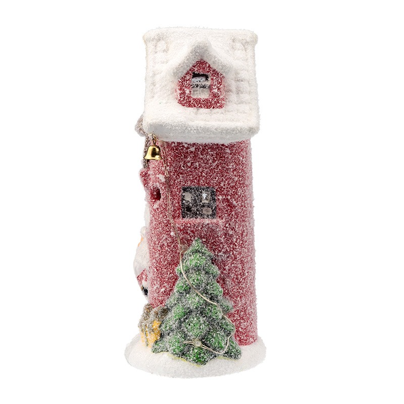 Керамическая фигурка «Красный домик» 11.5×8.5×20.4 см — не просто эффектный декор, поднимающий настроение, но и функциональный предмет, который отлично справляется с ролью ночника. 9 ярких светодиодов RGB, светящихся разными цветами, выделяют интересные детали, заставляя подолгу рассматривать сказочную композицию. Диоды экономичны, долговечны и абсолютно безопасны. В качестве элементов питания используются 2 мизинчиковые батарейки (тип ААА). Керамическая фигурка способна украсить любой уголок вашего дома, даже тот, где нет электрической розетки.