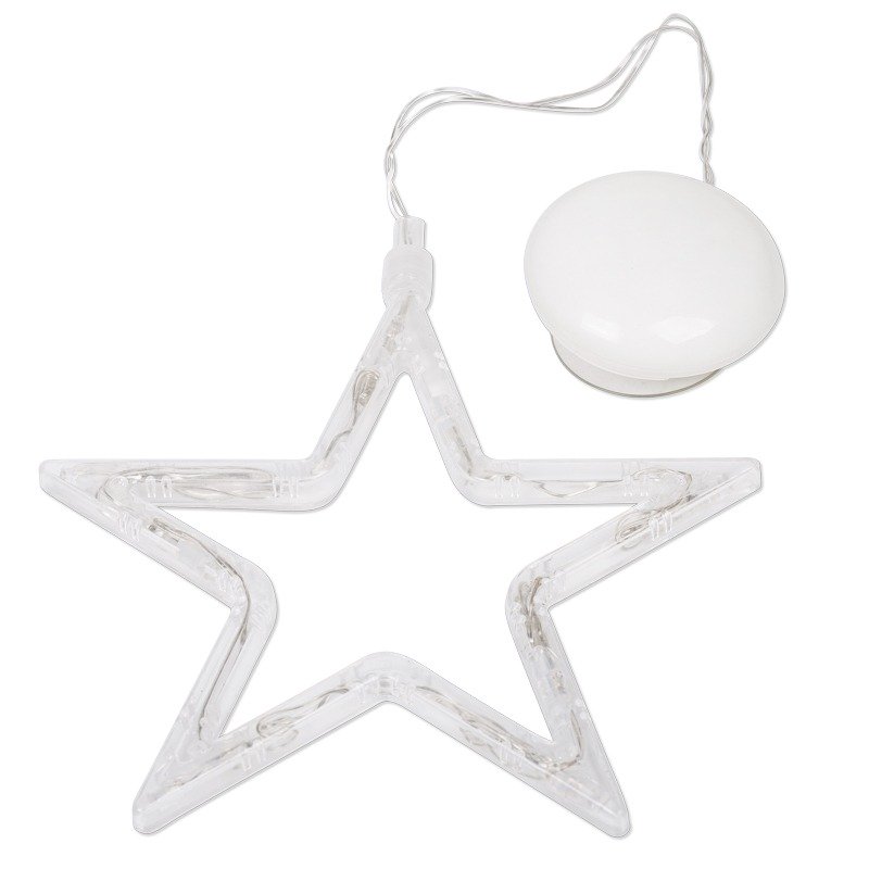 Светодиодная фигура «Звездочка» станет оригинальным интерьерным украшением, с помощью которого можно оформить любой уголок вашего дома, даже тот, где нет электрической розетки. Батарейный блок рассчитан на установку 3 мизинчиковых батареек (тип ААА). Одного комплекта хватает на 150 часов непрерывного свечения. 8 ярких светодиодов экономно расходуют заряд, излучая теплый белый поток. Звездочка изготовлена из прочной ПВХ-трубки. Присоска, которая прочно фиксирует изделие на ровной поверхности, располагается на батарейном блоке.