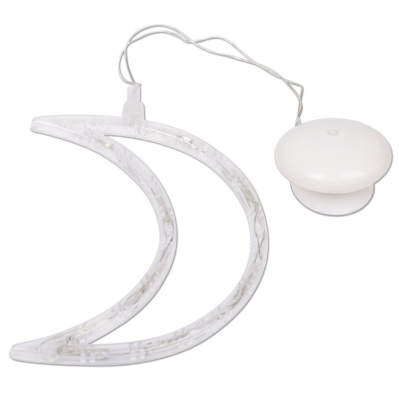 Светодиодная фигура «Месяц» — великолепный подарок родным и близким, который станет оригинальным украшением интерьера, как праздничного, так и повседневного. Изделие крепится на гладких поверхностях при помощи присоски, расположенной на батарейном модуле. Серебристый шнур, заключенный в изоляционную оболочку из ПВХ, отличается гибкостью, поэтому фигуру можно зафиксировать горизонтально и оставить свободно свисать. 8 диодов теплого белого свечения работают от 3 батареек типа ААА и экономно тратят заряд.
