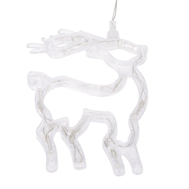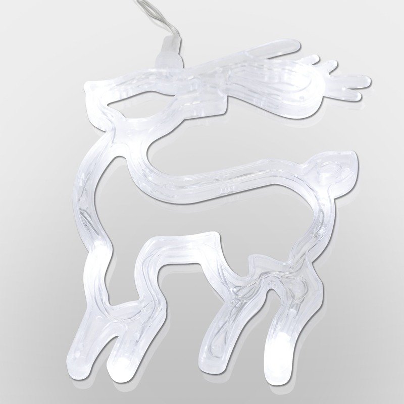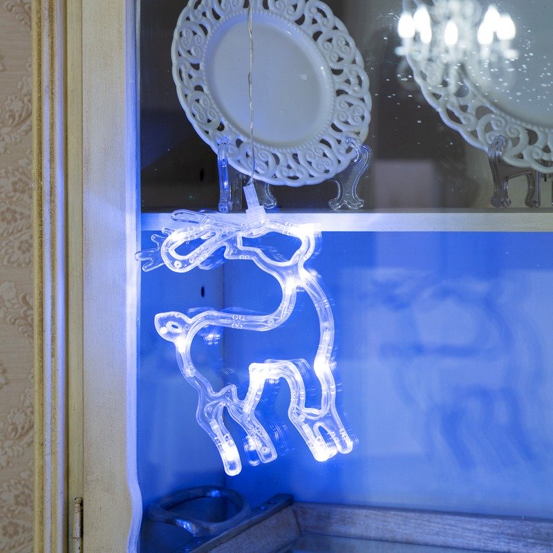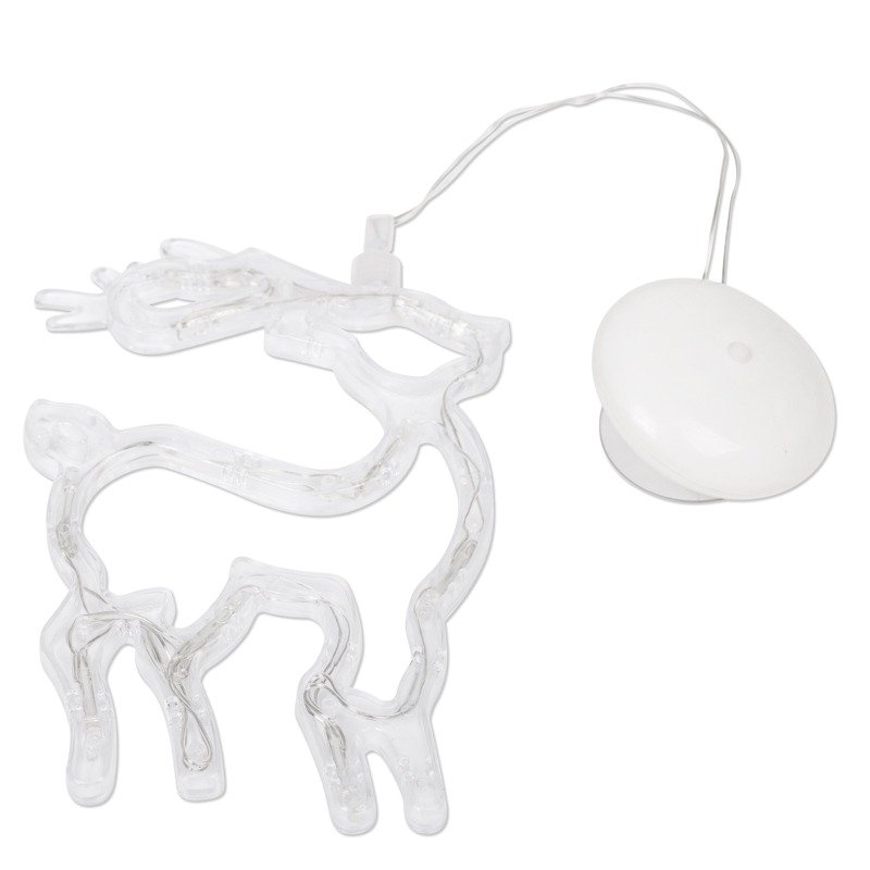 Светодиодная фигура «Олененок» на присоске с подвесом гармонично дополнит интерьер детской, гостиной, кухни, наполнит помещение ярким белым свечением задорных огоньков, подарит праздничное настроение взрослым и детям. 8 безопасных диодов питаются от трех мизинчиковых батареек (тип ААА). Одного комплекта элементов хватает на 150 часов непрерывной работы. Удобная присоска, расположенная на батарейном блоке, надежно фиксирует изделие на гладких поверхностях. Гибкий шнур в прозрачной оболочке из ПВХ имеет длину 20 см.