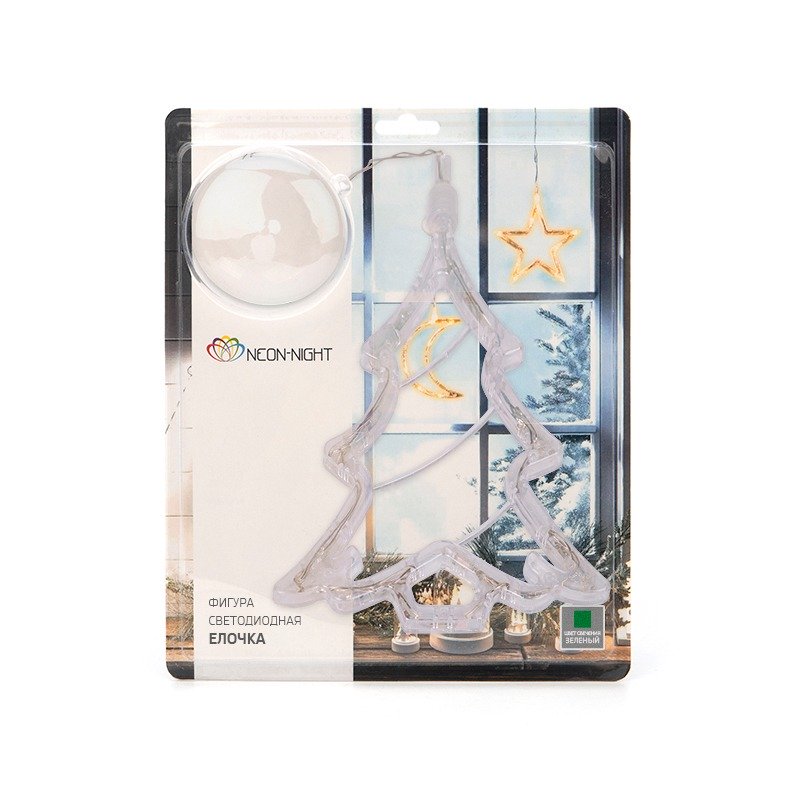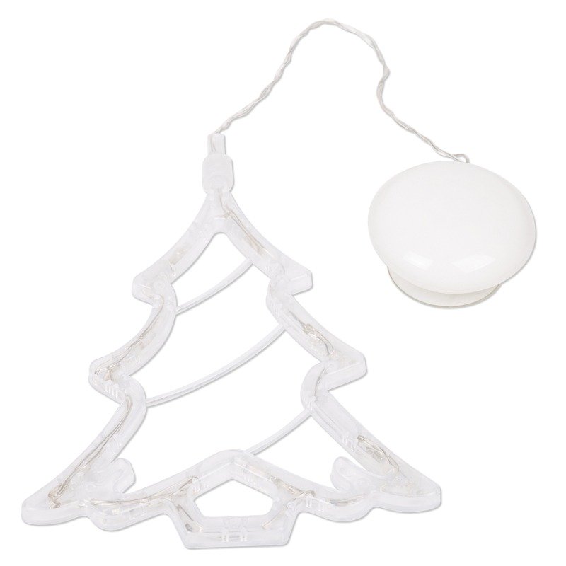 Светодиодная фигура «Елочка» на присоске — оригинальное решение для оформления интерьера: гибкий шнур в прозрачной изоляции из ПВХ, позволяет подвешивать изделие как на вертикальных, так и на горизонтальных гладких поверхностях. Надежная присоска прочно фиксирует фигуру. 8 диодов белого свечения равномерно распределены внутри пластиковой трубки, сложенной в виде елочки. Батарейный блок рассчитан на установку 3 элементов типа ААА. Одного комплекта аккумуляторов хватает на 150 часов работы.
