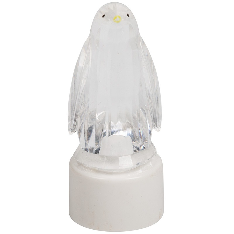 Светодиодная фигурка на подставке «Пингвин Кристалл» выполнена из полимера EVA — прочного нетоксичного пластика. Прозрачная фигурка с обработанными гранями напоминает скульптуру, высеченную из льда. В основании находится диод RGB, который меняет цвета, хаотично выбирая варианты из 256 оттенков. Изделие работает от трех батареек типа LR44, идущих в комплекте. Экономичный светодиод рассчитан на длительную эксплуатацию в условиях умеренной влажности.