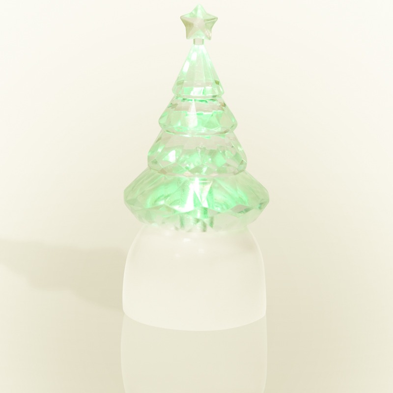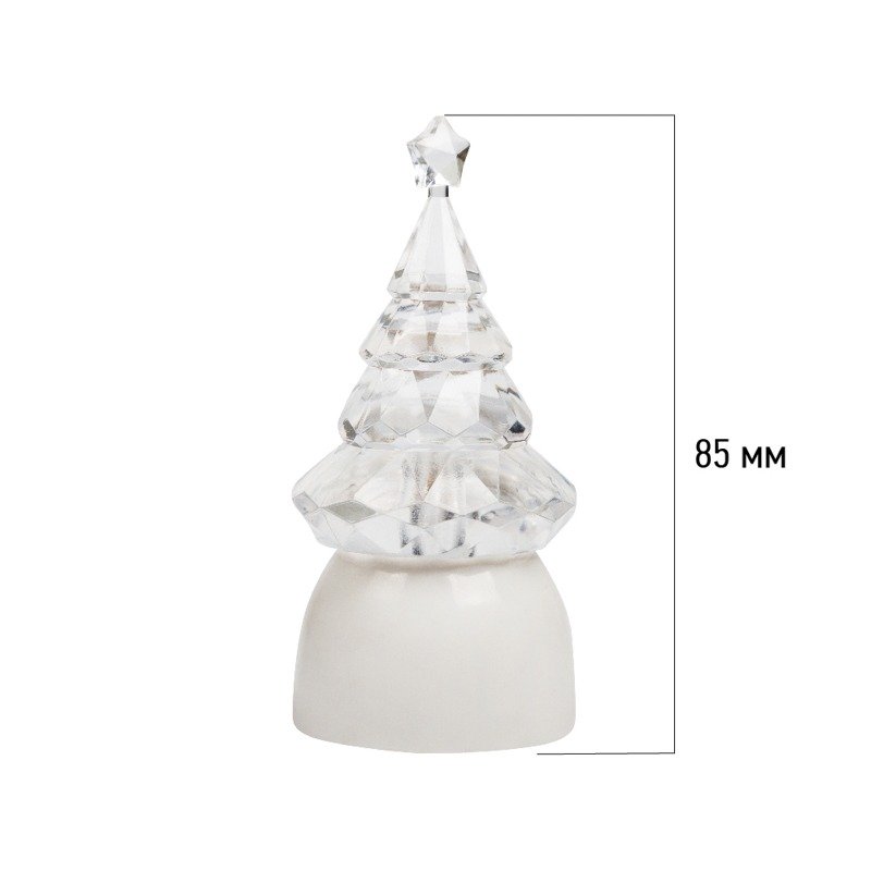 Светодиодная фигурка на подставке «Елочка Кристалл» напоминает великолепные статуи изо льда, которые обычно украшают городские площади, декорированные к Новому году. Миниатюрная фигурка с обработанными гранями, будто созданная руками умелого мастера, эффектно подсвечивается светодиодом RGB — безопасным, экономичным элементом. Диод меняет цвета, плавно переключая 256 оттенков в хаотичном порядке. Игра света в прозрачной фигурке завораживает, заставляя подолгу любоваться световым мини-шоу. Изделие работает от 3 батареек типа LR44.
