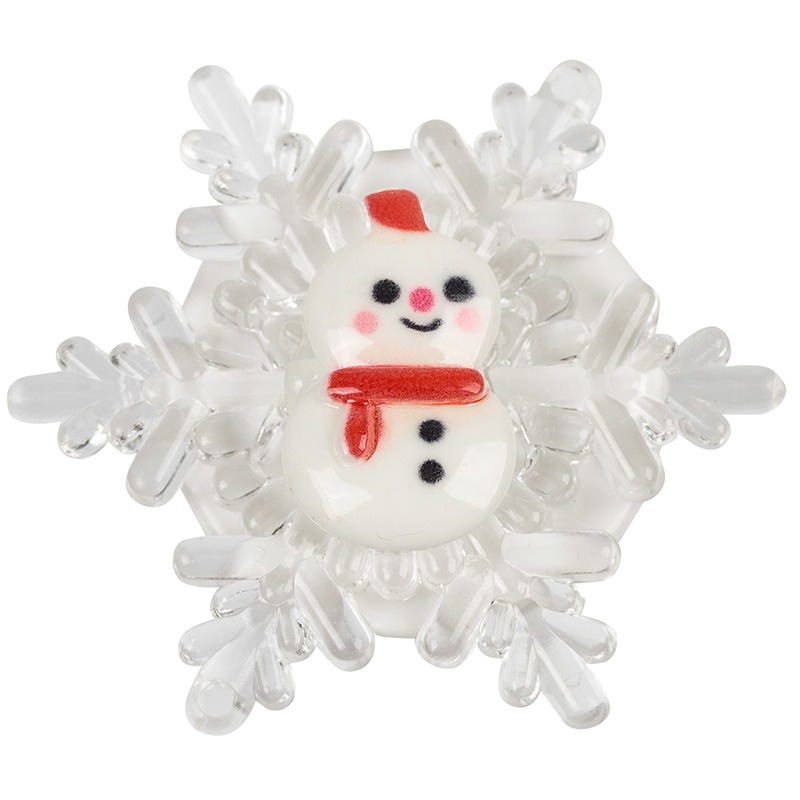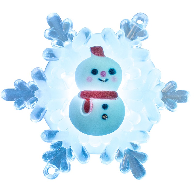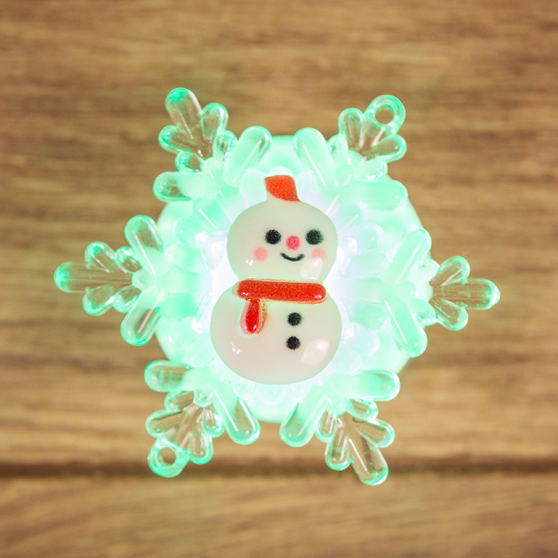Светодиодная подвесная фигурка «Снеговик на снежинке» 5,5×5,5 см — яркое, оригинальное интерьерное украшение, которое можно разместить на любой горизонтальной поверхности, прислонив к опоре, или повесить на елку, крючок, угол мебельного фасада при помощи тонкого шнурка. Фигурка светится разными цветами, оттенки быстро сменяют друг друга — всего 256 вариантов. Диод RGB выбирает варианты в хаотичном порядке. Батарейный модуль рассчитан на 2 элемента типа AG10, которые уже идут в комплекте.