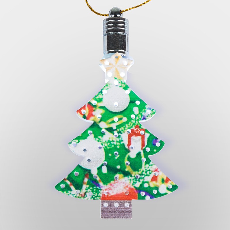 Светодиодная подвесная фигурка «Елочка» 9×6 см — настоящий символ Нового года и Рождества, поэтому декор станет приятным подарком к зимнему празднику для родных, друзей и коллег. В центре изделия, выполненного из прозрачного прочного пластика, находится один диод RGB, который светится разными цветами. Оттенки гаммы меняются в хаотичном порядке — всего 256 вариантов. Питание осуществляется при помощи трех батареек типа LR41 (идут в комплекте). Фигурка прекрасно подходит для украшения новогодней елки.