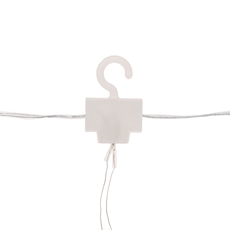 Светодиодный дождь легко повесить на штору, тюль или карниз благодаря пластиковым крючкам.
