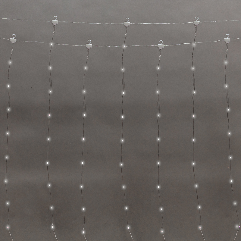 Гирлянда Светодиодный дождь из росы отлично подходит для оформления праздничных мероприятий. Гирлянда состоит из нитей, на которых расположены светодиоды в виде капель росы. Гирлянду легко повесить на штору, тюль или карниз при помощи пластиковых крючков.