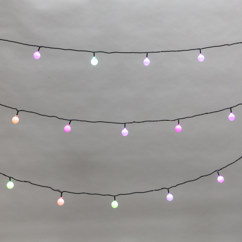 Гирлянда «Мультишарики» длиной 5 метров — эффектный декор, который гармонично украсит интерьер любого стилевого направления и подарит праздничное настроение окружающим. 25 светодиодов RGB помещены в матовые шарики с диаметром 25 мм. Матовый корпус каждого элемента рассеивает яркие лучи, создавая мягкое, приятное для глаз свечение. Гирлянда работает в режиме хаотичной смены цветов — всего 256 разных оттенков. Можно соединить до 6 изделий и получить украшение нужной длины. Для включения в розетку предусмотрен трехметровый питающий шнур с вилкой — удлинитель не потребуется.