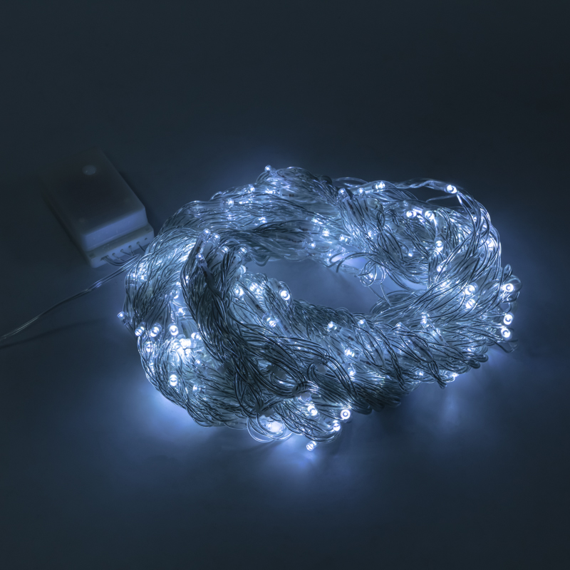 Данная гирлянда имеет белый цвет свечения светодиодов, контроллер и трансформатор в комплекте.